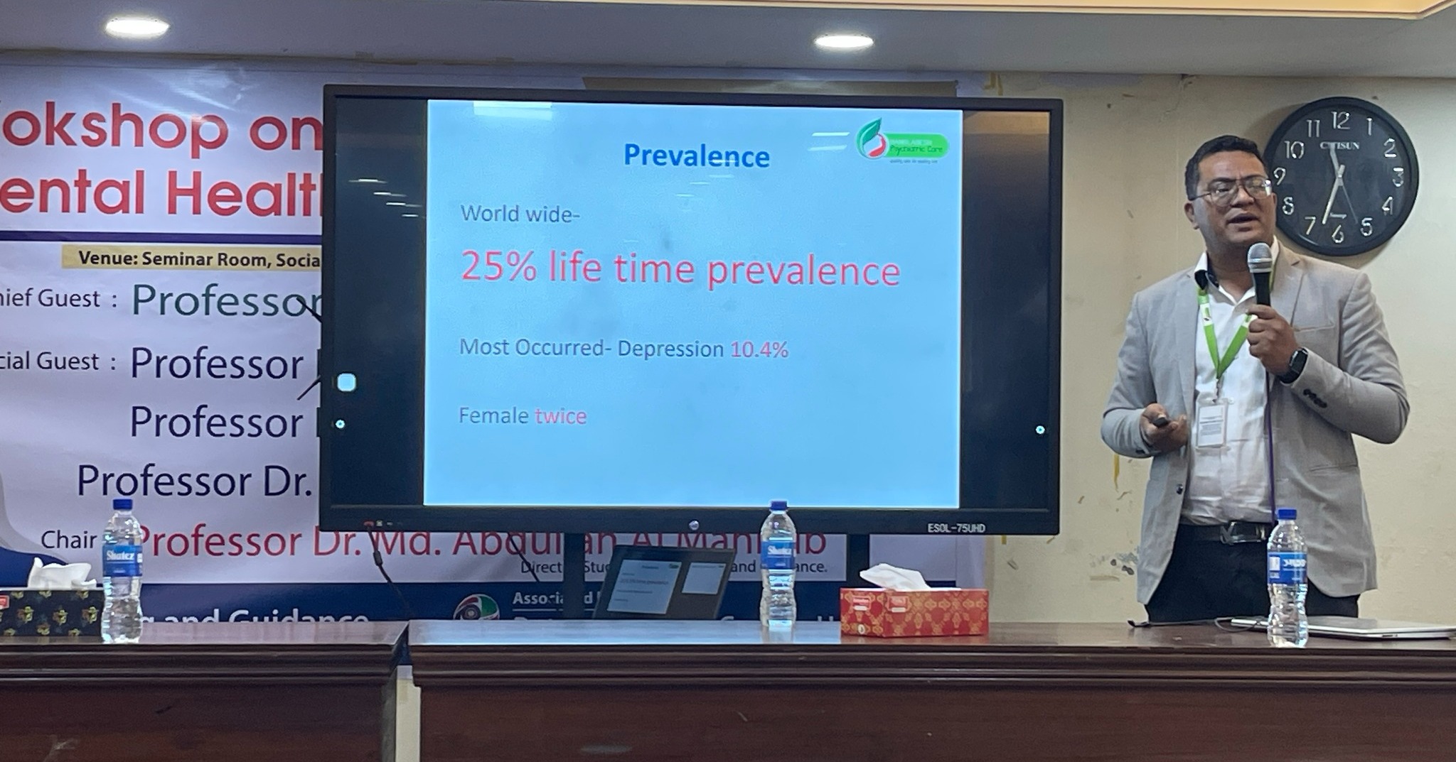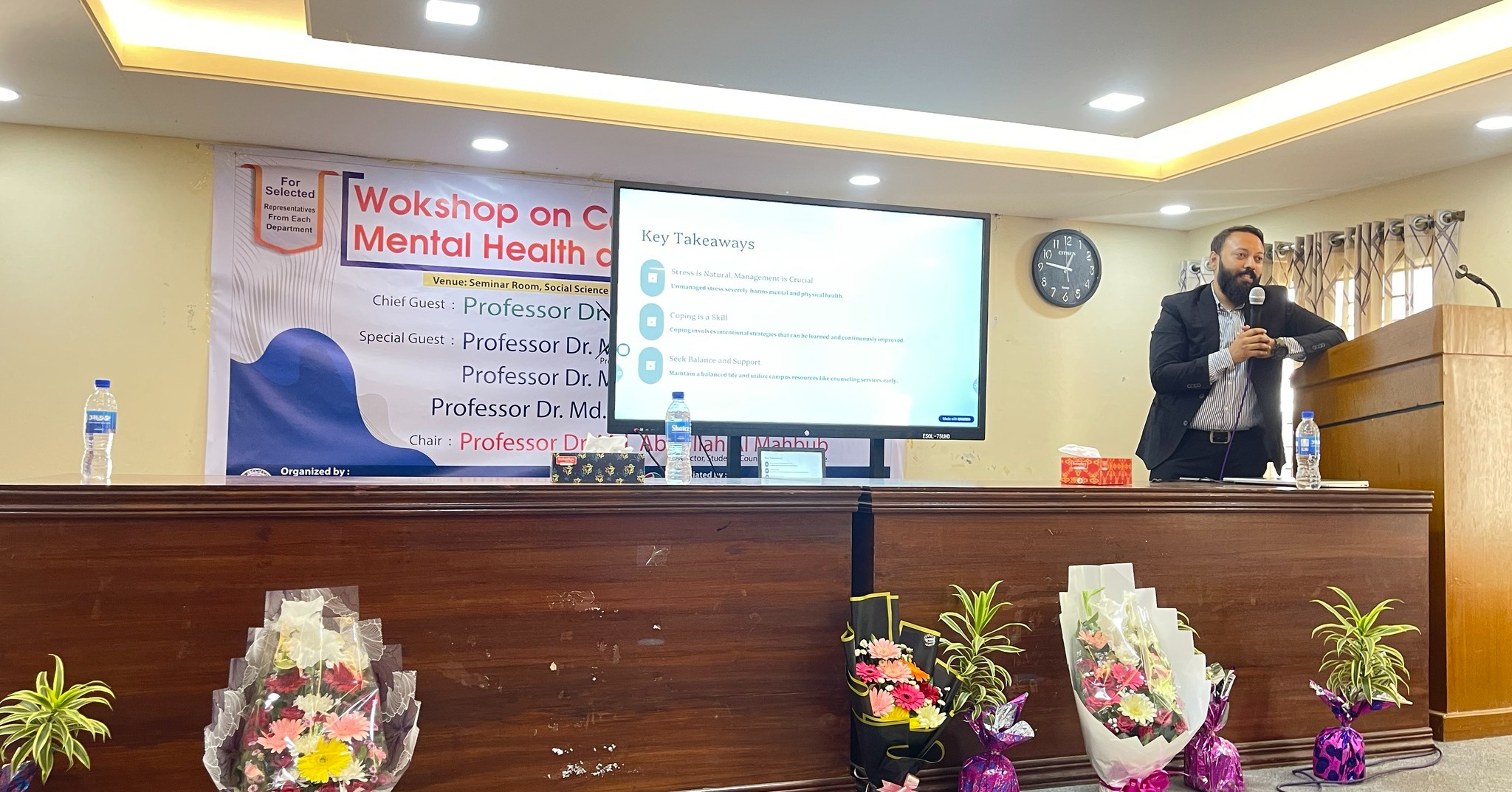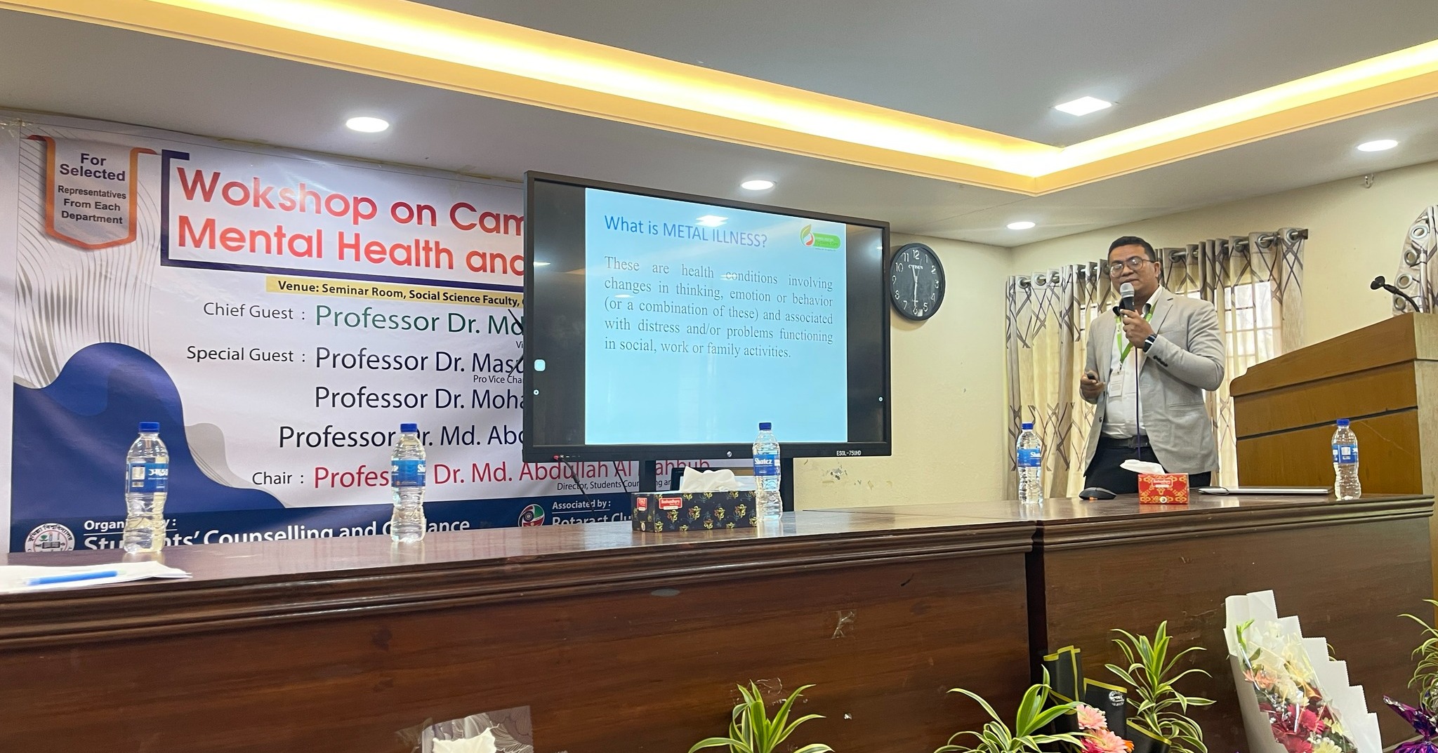 The workshop was organized in association with the Rotaract Club of Comilla University, reflecting a collaborative effort to foster a culture of mental wellness on campus.