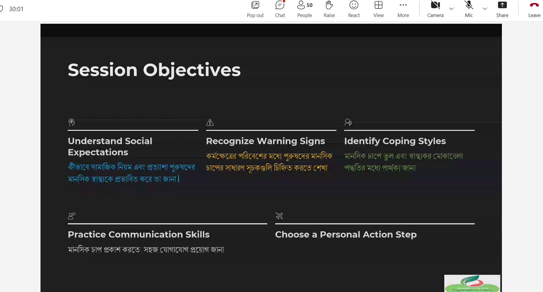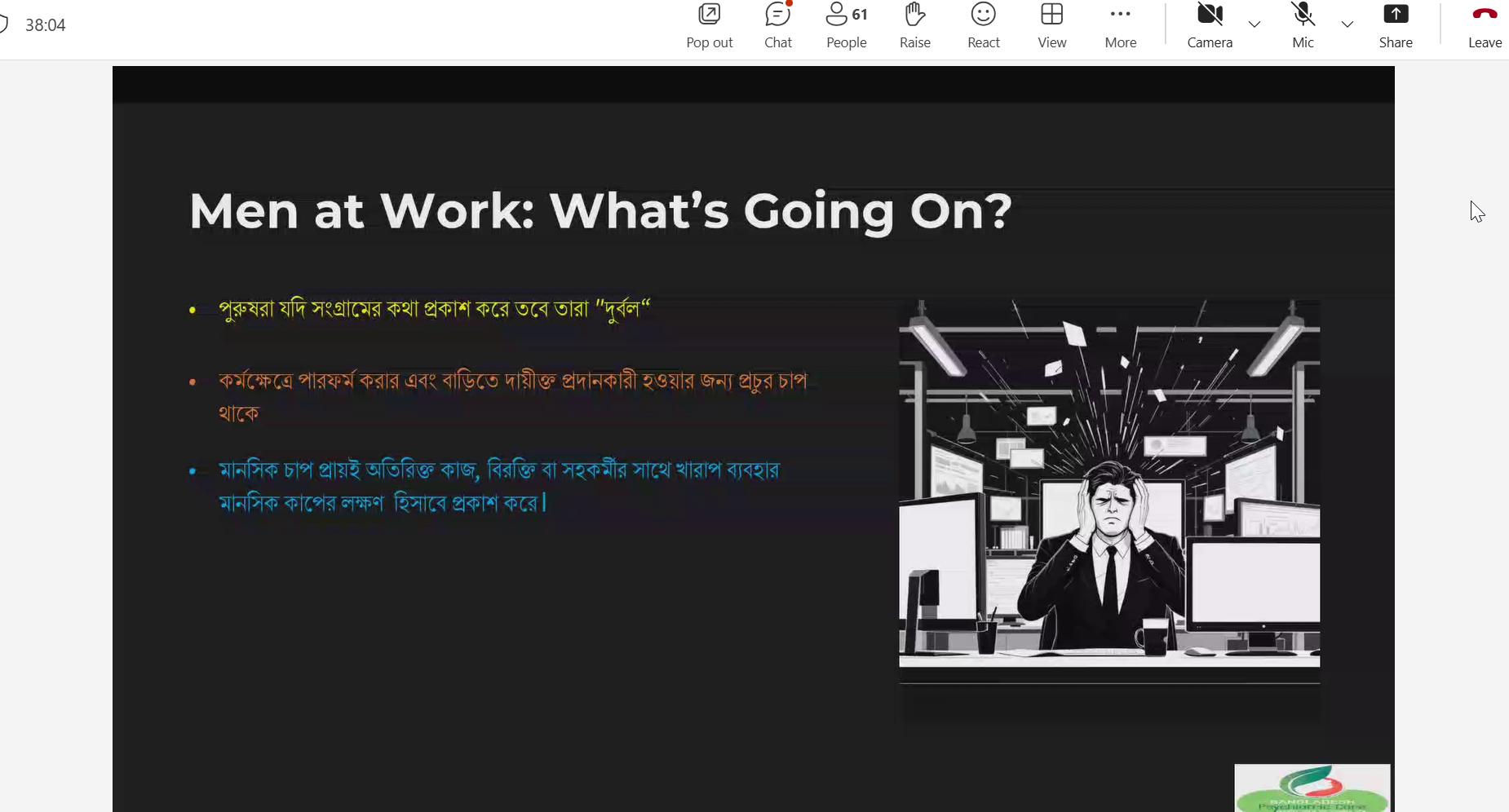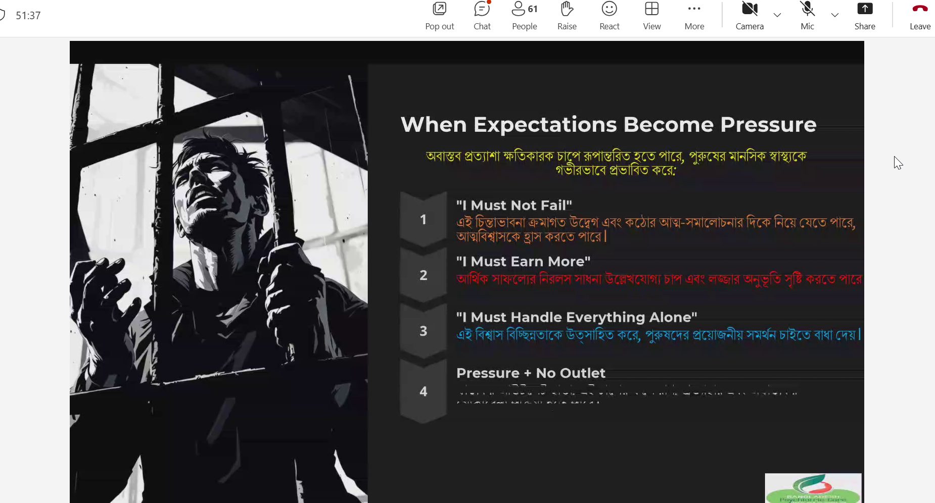 On November 19, 2025, Bangladesh Psychiatric Care Ltd. successfully conducted an online workshop focusing on mental well-being, emotional resilience, stress management, and the unique challenges men face in today’s world.