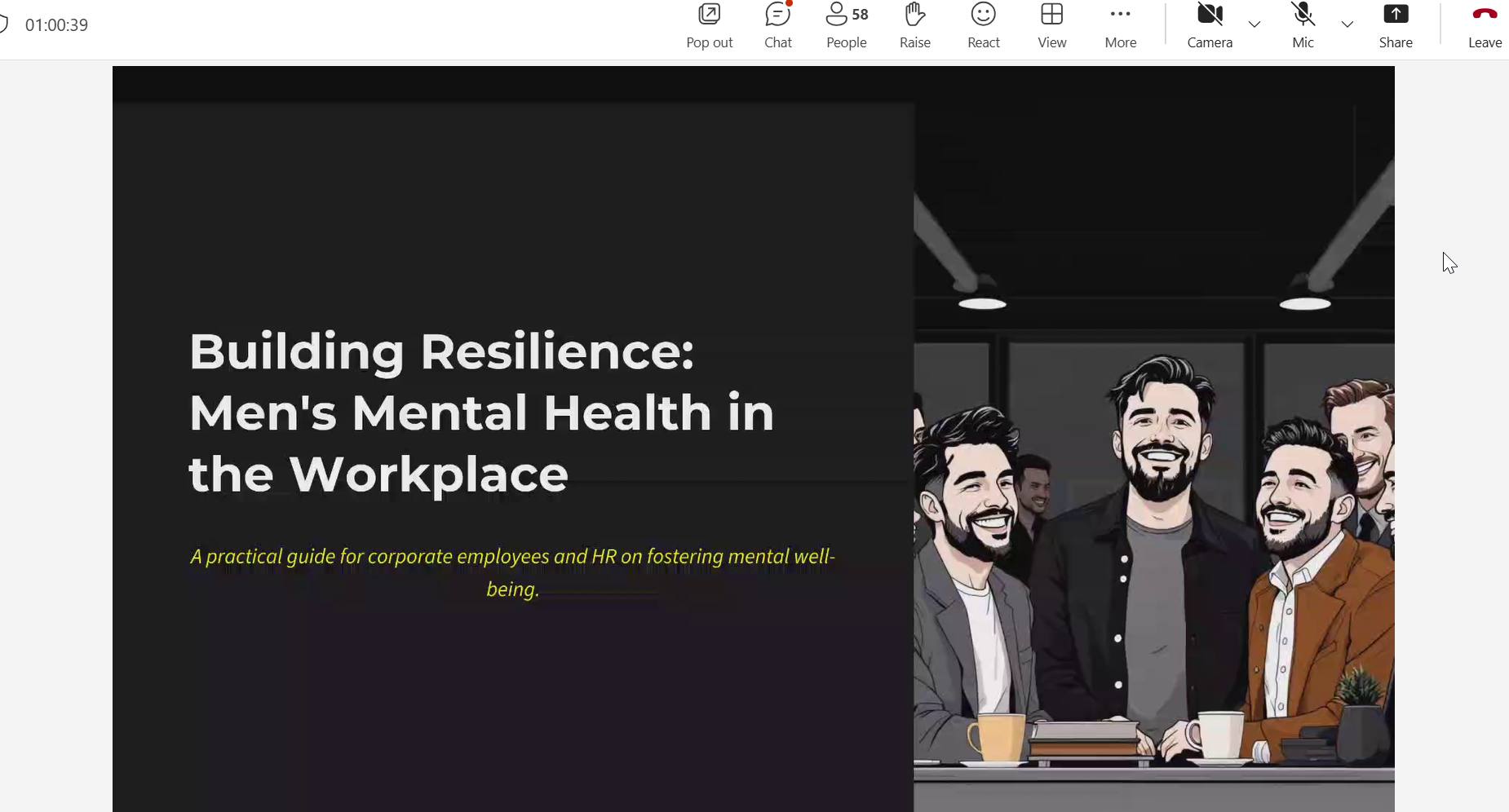 The workshop aimed to promote mental fitness, resilience, and open conversations around men’s mental health in the corporate environment.